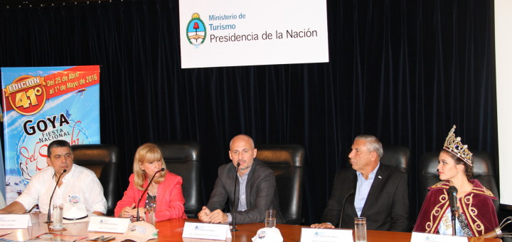El subsecretario de Desarrollo Turístico, Sebastian Slobayen; la ministra de Turismo de Corrientes, Inés Presman; y el intendente de la ciudad de Goya, Gerardo Bassi, participaron del lanzamiento de la...